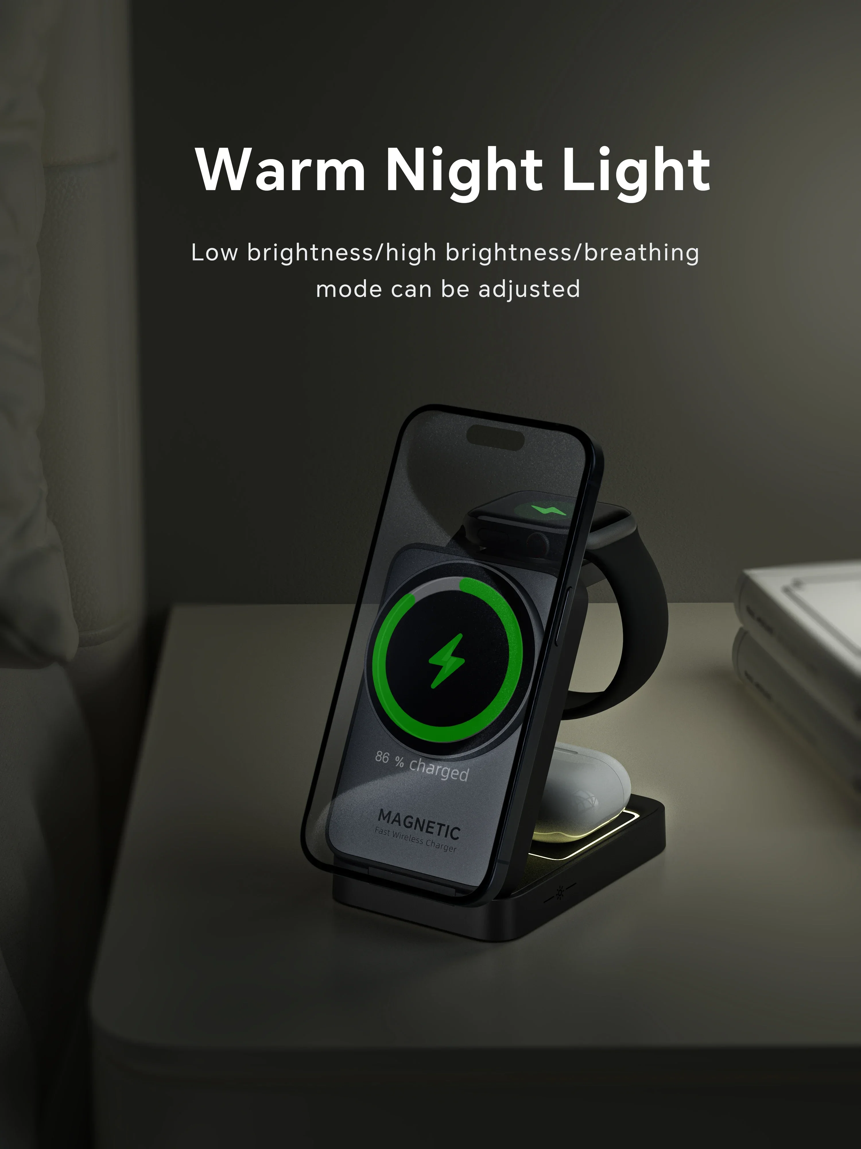 3 in 1 Magnetic Wireless Charger Stand for Magsafe. Foldable fast charging Station.